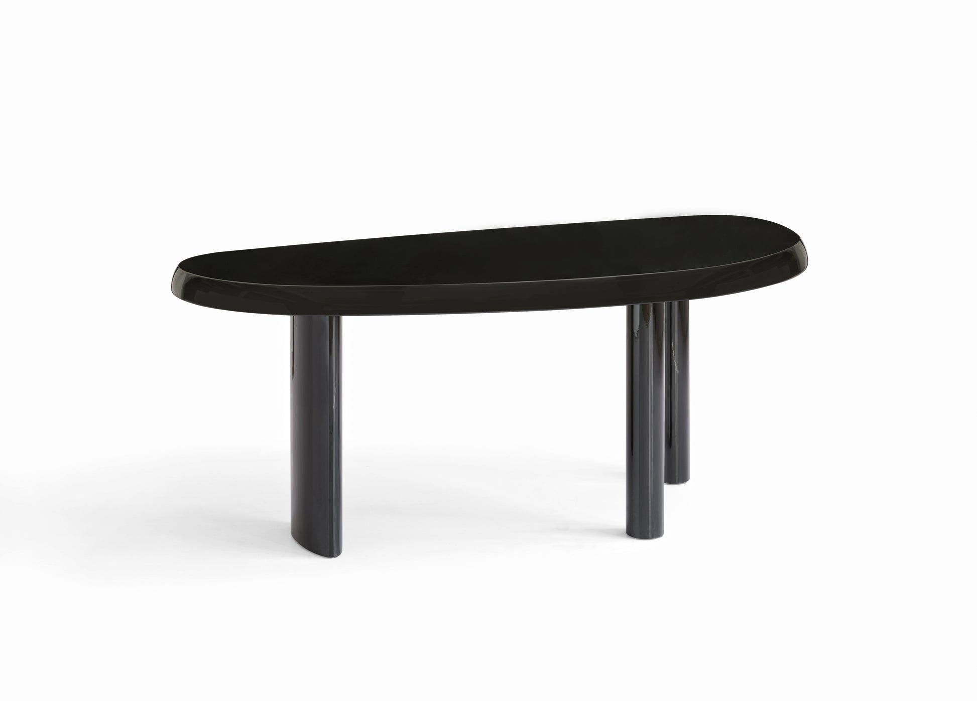Modern Rubberwood Dining Table with High-Gloss Black Finish