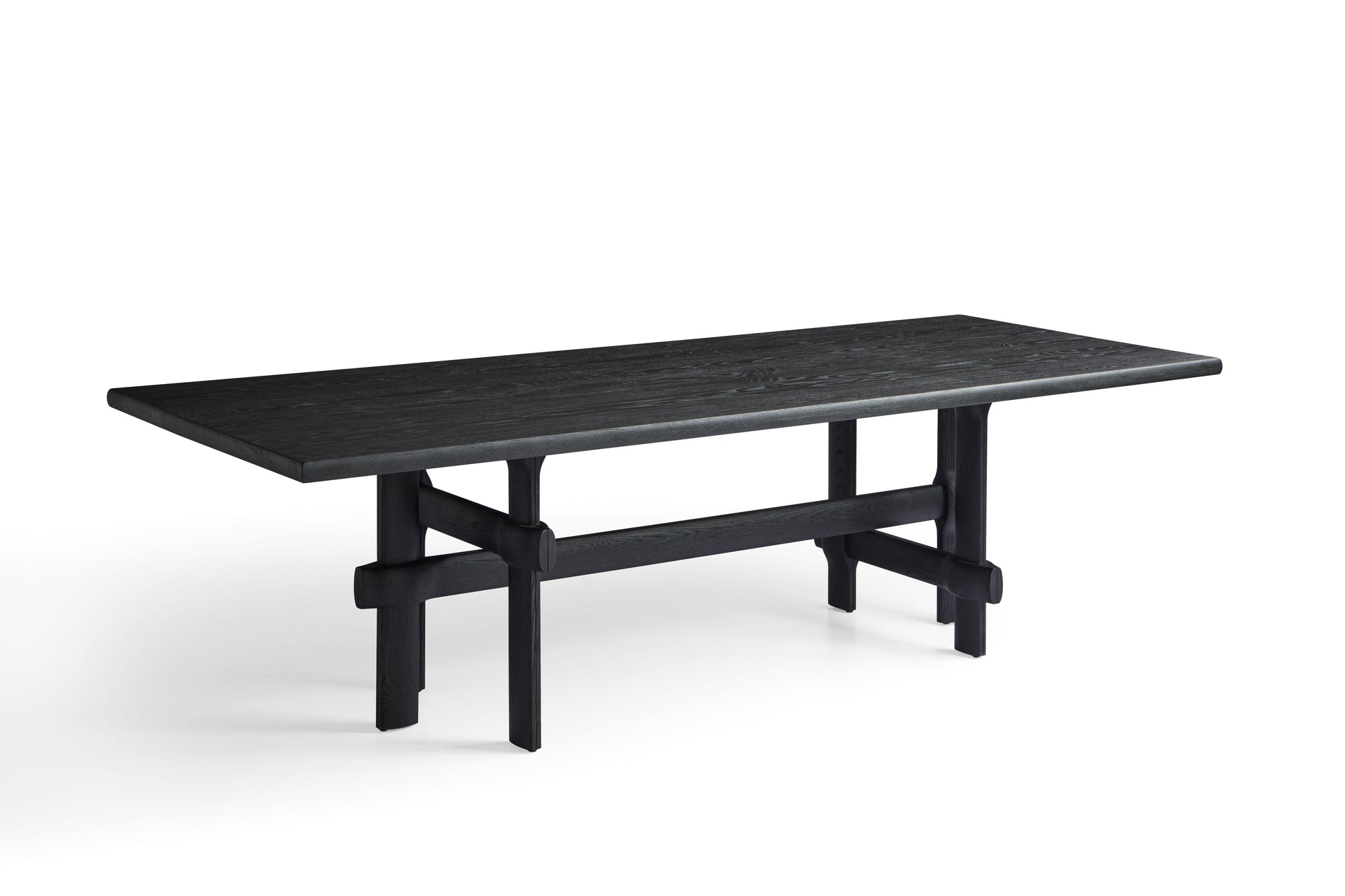 Constructed from the finest white waxwood combined with durable multilayer board and finished with a red oak veneer, this table promises not only an aesthetically pleasing grain but also exceptional longevity. The black matte open-pore lacquer adds a sophisticated, contemporary edge to the design, ensuring that the table stands as a statement piece in any dining room decor.
